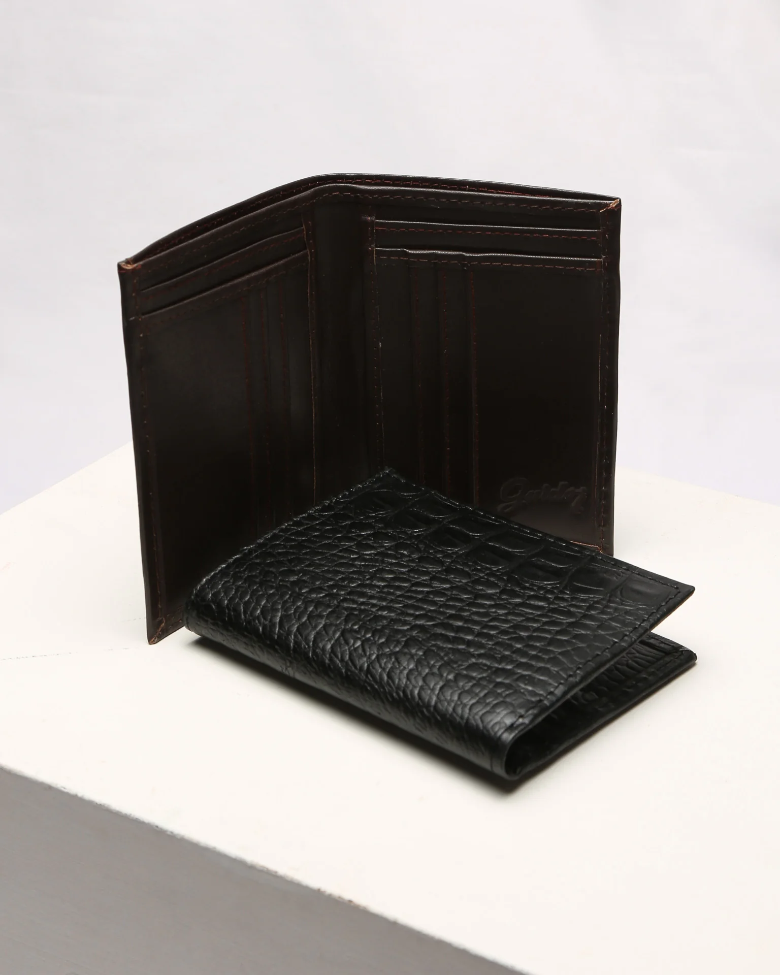 Art. B220 – Billetera Euro GUIDO, elaborada artesanalmente con cuero 100% vacuno de la más alta calidad. Esta billetera funcional incluye compartimentos para tarjetas y billetes, y presenta un diseño único disponible en cuero liso o croco. La combinación perfecta de elegancia y practicidad en un solo accesorio.