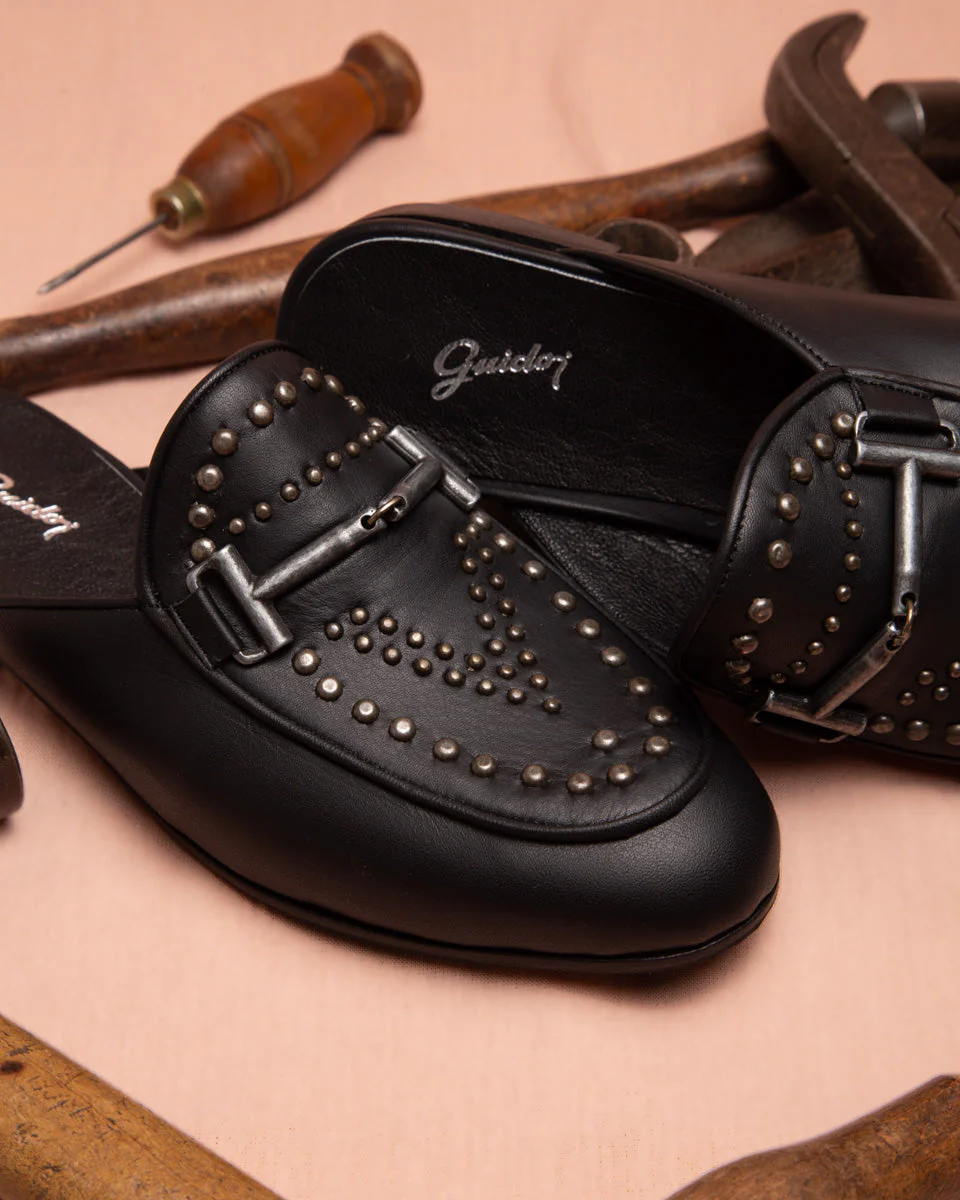Art. 1810 – Zueco marca GUIDO especialmente diseñado con tachas y un delicado aplique color black niquel.