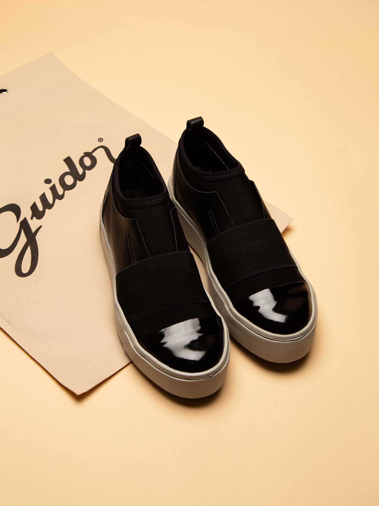 De nuestras creaciones más contemporaneas, la Philly Mujer busca priorizar la comodidad en en el calce del día a día. Confeccionada con cuero negro, un ligero detalle de cuero acharolado en la punta y base de goma.